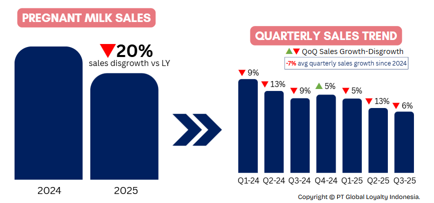 Based on transaction data, pregnancy milk sales have shown a significant decline of approximately 20% compared to the previous year. This downward trend has been consistent from the first quarter of 2024 through the third quarter of 2025.