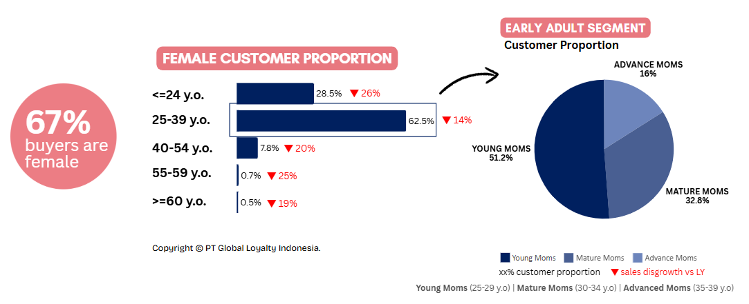 The majority of pregnancy milk buyers are women, particularly those aged 25–39, the young mothers group. However, the decline in sales is not limited to this group; it is observed across all age ranges, indicating a widespread shift in the perceived need for pregnancy milk, trending downward across the board.